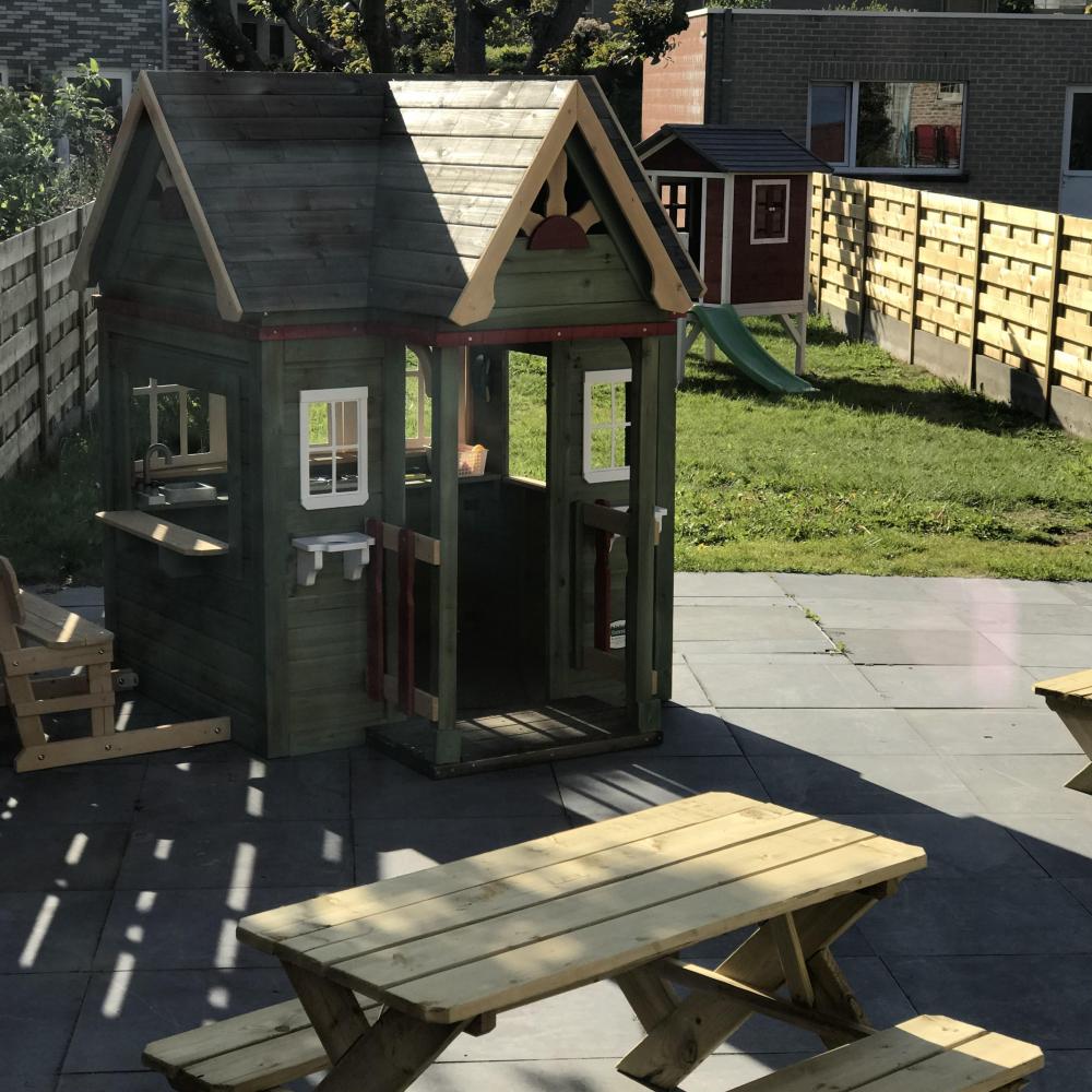 De groepsruimte waar de kinderen verblijven is licht en heeft een open karakter hierdoor is het een prettige omgeving voor de kinderen. Ze hebben bij ons voldoende ruimte om te bewegen en om op ontdekking te gaan. De ruimte is veilig en kindvriendelijk en met heel wat speelhoekjes ingericht. We stimuleren buitenspelen en natuurbeleving, bij ons in de grote tuin. Bij alle activiteiten houden we rekening met het ritme van het kind.